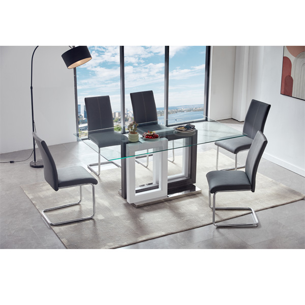 Material:Glass top, Post: 3D grey paper and white PU, Base: ss,&Chrome,PU